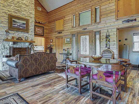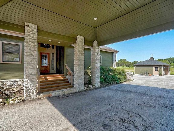 Want to get out of the city? This private, 9.5 acre property is just West of Austin Texas with the hill country as a beautiful backdrop. The wet-weather pond is approximately 2 ½ - 3 acres. The home was built in 1984 and is 1,664 square feet with high ceilings, a spacious, updated kitchen with stainless steel appliances, a farmhouse sink and lots of cabinet space. The primary bedroom overlooks the pond and has a door to the covered rear patio. The 2nd bedroom also overlooks the pond and has a private bath. The third room could serve as a home office or 3rd bedroom. The covered back porch faces South and overlooks the pond and property. 2-car drive-through porte cochere plus a detached 2-car garage. There is a water well on the property that is approximately 140' deep, used for irrigation only. Gated, Lake Travis waterfront community with underground utilities, two boat ramps, marina slips for sale or rent, a community pool, park and tennis courts. Low 1.69% tax rate.
