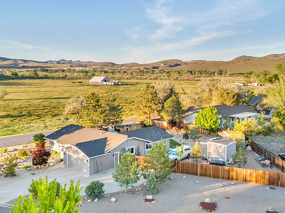 This stunning 3-bedroom, 2-bath home is situated on a spacious corner lot with breathtaking views of the surrounding pastures. Nestled in the desirable Riverview subdivision in east Carson City, this property is truly move-in ready. The home features beautiful laminate wood flooring throughout. The kitchen is a dream and includes solid surface quartz countertops, updated cabinetry, top of the line appliances, a gas cooktop, built-in oven, and a breakfast bar., The expansive corner lot offers RV parking, and two sheds provide ample storage. The parklike backyard is impeccably maintained, featuring raised garden beds for your gardening pleasure. The living room, with its open concept and woodburning fireplace, is perfect for entertaining. In the primary bedroom, you will find tasteful updates including dual sinks and a walk-in shower. This home is a must-see and wont be on the market long. Schedule your visit today!