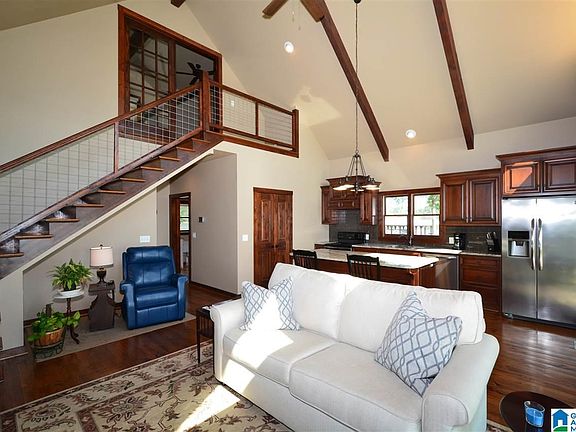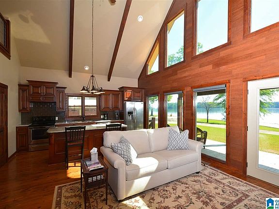 This beauty is located on Lay Lake! This living space is open and vaulted with beautiful finishes. Complete with hardwoods AND a loft bedroom. The kitchen has great space with a large breakfast bar and views of the lake! The windows bring in large feeling with incredible sunlight and views inside the living area. This won't last long and is in an exceptional location on flat lot. 2BR/2BA with a pier and water access. It's waiting just for you!