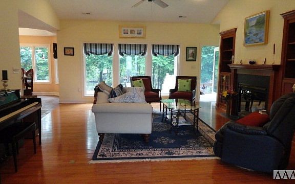 EXCEPTIONAL NEW PRICE! This cul de sac home is on a stunning oversized lot featuring a row of crepe myrtle trees down the driveway. Enclosed rear sun porch, new deck, water softener, 15KW emer. generator, 500 gallon buried propane tank, new gourmet kitchen with quartz Cambria counters and large island, built-in wine cooler, finished FROG has 1/2 bath and surround sound/whole-home audio system, 3M sun control window film on all rear windows and sun porch, and a dock with gazebo and small boat lift. Amazing value!