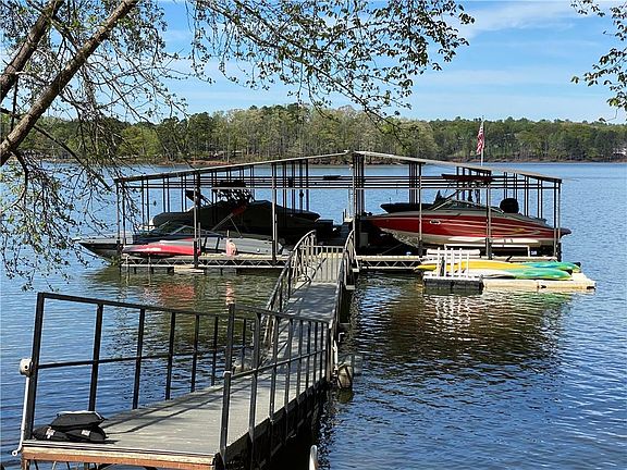 Riviera Estates is a gated community tucked away on Lake Hartwell just off Exit 21. This community is located just minutes from all shopping and restaurants. You will find many updates throughout this 3BR/2BA home with a bonus room. The bonus room is currently a theater room and all of the equipment and furnishings pass with sale. It has 6 theater seats, custom cabinetry with wine cooler and popcorn station, 60" Samsung smart TV with Onkyo sound system. The main level features an open plan with large living room, breakfast/dining area overlooking lake Hartwell and the kitchen has updated lighting, granite countertops, stainless appliances, and under counter lighting. The master bedroom has an additional 200sq ft that was added to also allow for a large walk in closet. The master bath has been completely remodeled with a walk in tile shower, floor/wall tile, moldings, lighting and more. A circular driveway was added and this home is situated just steps away from the concrete golf cart path that leads to the deeded covered boat slip.