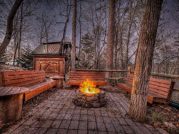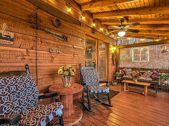 Blissfully charming, turn-key Cabin in Epworth, Ga! If you're looking for a vacation home or a permanent residence, this FULLY FURNISHED turnkey cabin is the perfect place to call your own. Majestically situated in an extremely scenic area only 10-miles from Downtown Blue Ridge, this 3BR/3BA home emanates tranquil vibes with a fully screened-in front porch, a rustic wood exterior, and a backdrop of towering trees. Designed to routinely capture the hearts of residents and visitors alike (presently used as an Airbnb), the interior features an openly flowing floorplan, soaring vaulted ceilings, gorgeous wood flooring, tons of natural light, and a spacious living room with a wood-burning stone fireplace. Perfectly suited for entertaining, the open concept kitchen features black appliances, sprawling countertops, an electric range/oven, a built-in microwave, a dishwasher, a center island, ample cabinets, and a dining area. Enticing with extra party possibilities, the outdoor space includes a huge covered deck with outstanding landscape views and plenty of room for lounging. Envision grilling delicious burgers and laughing with friends, while other guests play a riveting game of cards. If you're in the need of serious relaxation, the lower-level covered deck has a treat worth experiencing daily. After a long day, enjoy the warmth and soothing qualities of the outdoor hot tub. Later on in the evening, roast marshmallows and tell tall tales to friends around the built-in firepit. If