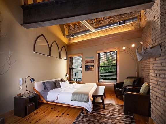 This spacious, luxury condo is located in the heart of Downtown Fargo. This condo unit is part of a small building (only 4 other condos in the building) offering a private space for living that's both secure and accessible. It features modern amenities, original hardwood floors, exposed brick, soaring 18' ceilings and even your own private one-stall garage for parking. At over 1,900 square feet, this is one of the largest (if not THE largest) units you will find available for rent in Downtown Fargo. The space features two bedrooms, two bathrooms, an office, a laundry room, a large entry closet and large open-concept kitchen, dining and living space. The condo association bylaws prohibit pets in the building. The price of the unit is for the unfurnished unit; however, furnishings (as seen in photos) is negotiable). At over 1,900 square feet, this is one of the largest (if not THE largest) units you will find available for rent in Downtown Fargo. The space features two bedrooms, two bathrooms, an office, a laundry room, a large entry closet and large open-concept kitchen, dining and living space. The condo association bylaws prohibit pets in the building. Owner pays for water, snow removal, garbage, taxes and sewage. Renter pays for electric, internet and other elective utilities.