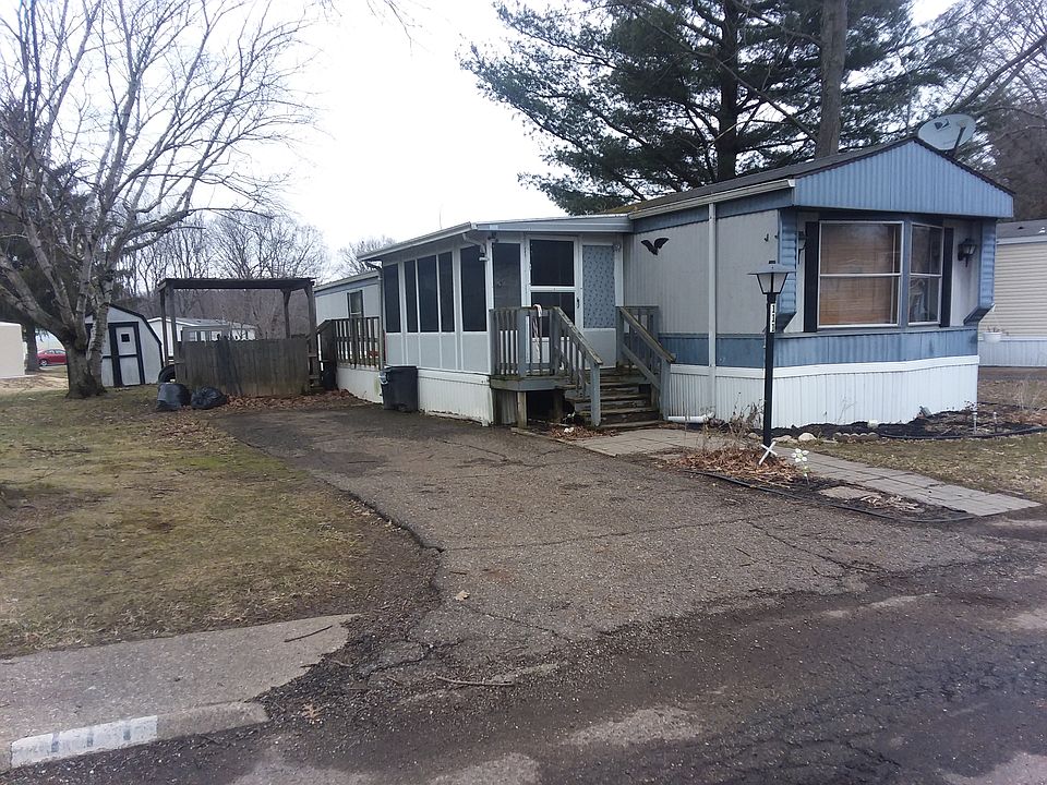 Three portches,one enclosed,one upper no roof,the last ground level semi enclosed with a roof overtop, great for cook-outs.All portches are connected.A huge open field mowed by the landlords is connected to the yard.Firepit and shed is in the rear side yard. One of the only mobile homes without surounding neighbors.Only a walk away from the fenced in pool area,park,basketball court,and the woods.The driveway connects to walkway, leading to the first enclosed portch,great when needing shelter from the weather.Walking into the kitchen plenty of cupboard space.There is a open concept.Bar separating livingrooom and kitchen,great for extra seating.Two bedrooms in hall, at the end of the hall the first bathroom tub/shower combo across from the washer and dryer hookups. Master bed and bath in the rear, jacuzzi tub walk in shower,dual vanity.Mirrors surrounding.More storage in the master bath.Natural lighting,that shines through the glass doors in the mornings. Central air,gas heating,gas range. Lots rent includes waste and water charges depending on water usage rent is $425.00-$450.00 a month. If interested you will have to fill out a application for each adult living in the household at the main office of Rolling Hills Village. Please contact me Sarah Wise 330 834 8006 for any questions or to schedule a appointment for a tour of the house.