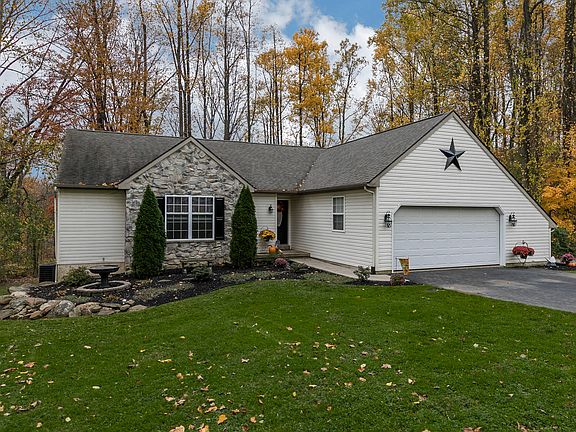 Welcome to this beautifully maintained home situated in a park-like setting! This lovely home with over 1 acre of land features a huge deck for entertaining or relaxing and enjoying the pretty wooded views. There even a deck off the master bedroom for additional outdoor living space. The long paved driveway and large two car garage provide plenty of space for parking. As you enter the home you'll find a beautiful two story great room with tons of light and windows to enjoy those wonderful views! Enjoy cozy nights in front of the gorgeous floor to ceiling stone fireplace. The great room also offers an additional area for dining. Heading into the kitchen area, you'll find updated cabinets, stainless steel appliances and neutral countertops. There's a huge pantry for storage and eat-in area for additional dining space. A breakfast bar provides, even more space for relaxing and enjoying a cup of coffee or your morning breakfast! The laundry room is conveniently located off the kitchen. As you head down the hallway on the other side of the home, you'll find three spacious bedrooms. The master bedroom features a vaulted ceiling, neutral decor and its own deck. The large master bathroom features a double vanity and a separate shower/tub area. It's a great layout for those busy mornings! One of the best features of this home is the outside living space. The newer deck is huge and a great space for cookouts or just relaxing after a long day at work. The property backs up to woods so you'll enjoy the views and privacy. Located close to schools, shopping and major routes, this is a home you won't want to miss!