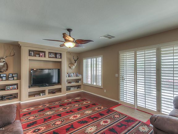 This move in ready beauty sits on an oversized, corner lot with RV gate and parking. In addition, there is a greenbelt in front and behind the home leaving only one neighbor to the north. This spacious home boasts a step down formal living & dining area. Kitchen with abundance of cabinets & granite tile countertops overlooks family room with built-in entertainment center. Off family room is den and half bath. Upstairs has huge master retreat with extra large walk in closet and separate shower and tub. Not to mention 3 additional bedrooms and a loft! 3 car garage with built-in cabinets. Backyard is huge with low maintenance desert landscaping. Plenty of room for a pool. Home has plantation shutters; no carpet, all tile or laminate and was recently painted inside and out.