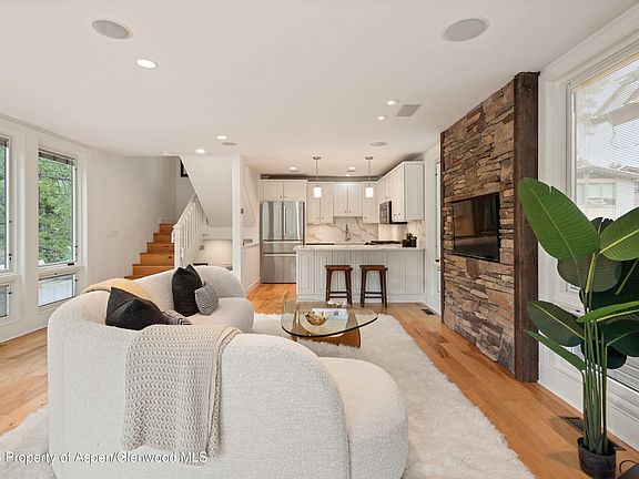 Experience the perfect harmony of modern luxury and timeless charm in this stunning single-family home nestled in Aspen's highly coveted West End. Boasting views of the majestic Shadow Mountain, this residence combines classic curb appeal with contemporary sophistication all just steps from downtown Aspen. Originally built in 2006 and fully renovated in 2024, this pristine home showcases premium craftsmanship and thoughtful updates throughout. Located in one of the few Aspen zones with current Short-Term Rental Permits available, this property offers fantastic potential for short-term rentals or permanent living. The fresh exterior combines wood and stone for a timeless facade, while high ceilings and abundant windows fill the space with natural light and a sense of openness. The fully furnished interior is a designer's dream, featuring upscale contemporary furniture, ample lighting and new countertops. Enjoy the durability and beauty of hardwood floors, top-of-the-line Bosch appliances, a gas range, and sleek modern fixtures. The spacious primary suite on the upper level offers vaulted ceilings, a relaxing jetted tub, and a private sanctuary to unwind. Three bedrooms and three full baths provide ample space for family and guests. Multiple storage options and an attached one car garage make life both organized and easy, perfect for skis, bikes, and all your gear. Relax in the private hot tub on the outdoor patio - with immersive sound from the built-in audio system.