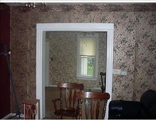 Exterior Features: 2 story home with a basement and attached garage. Close to city hall.Off street parking via the driveway and garage. small yard for easy mowing. back fence needs to be repaired. there is a broken window on the alley side of the house but it is an easy repair. no shade to speak of. nice small front porch. Interior Features: 3 Bedroom 1 Bath 2 rooms upstairs Kitchen is spacious and has dining area all plumbing fixtures were present. walls and ceiling were in good shape floors need carpet in some rooms. there is some Hardwood flooring in the upstairs bedroom closet to the west that was never used. it is still bundled for use.