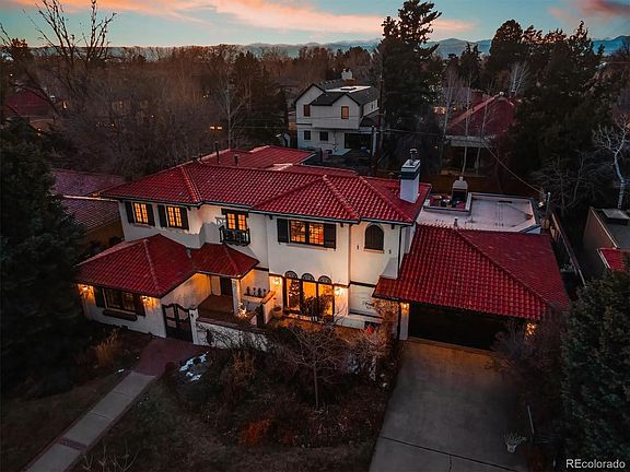 Nestled in Hilltop, one of Denver’s most desirable neighborhoods, this Mediterranean-style estate with stunning architectural details and a terracotta roof exudes villa ambiance. 5 bedrooms and 4.5 bathrooms sprawl across 4,150 square feet of interior living space. The double-height entry foyer with beautiful wood floors welcomes you inside the residence, where Mediterranean-inspired interior design elevates each room. Three sets of French doors in the family and dining rooms bathe the living space with sunlight and open to the outdoor patio, creating a romantic indoor/outdoor living experience. Enjoy the formal living room with a Moroccan-tiled fireplace, custom built-ins and French doors opening to a private courtyard. The immaculately upgraded kitchen is outfitted with high-end appliances by Wolf and Sub-Zero, built-in Miele coffee maker and microwave, two Asko/Bosch dishwashers, travertine countertops, and gorgeous masonry accents. This level also offers a spacious private office with French doors to patio, a mudroom, a half bath, a guest suite, and two additional bedrooms with a shared bathroom, including access to another inviting patio. Retreat to privacy in the luxurious second-level primary suite with a walk-in closet, a balcony, and a bonus sitting area. The second level also has a bedroom with en-suite bathroom and separate laundry room. Set on an expansive 10,900-square-foot lot, the backyard is a tranquil oasis with an exquisite tiled patio that spans two sides of the home and features a spacious outdoor kitchen, dining and living area, a fireplace, and a Moroccan fountain. An entertainers dream home, inside and out! This residence is just blocks from Robinson and Cranmer Parks and minutes from Cherry Creek North for Denver’s premier shopping and dining options. Call or text today to learn more!