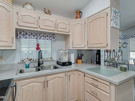 Park Model with huge AZ room and all updated. This is a must see. No work to do. SS appliances.. fridge has ice and water, stove is convection also, brand new tile step in shower, new subway tile backsplash, Large AZ room 7 ceiling fan /lights, vinyl laminate flooring throughout. Down the stairs is a 2nd bath, office area, laundry area, workshop and large. Greenfield Village #533. To see this home today... call Linda 480.330.3053