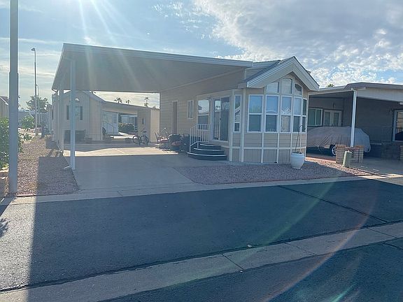 2010 Cavco Park Model. Very clean and in excellent condition. Large driveway with room for two large vehicles under canopy. Opportunity to design and build a new AZ room just the way you want it. Interior completely repainted this year. New flooring to be installed in living and dining room area before sale. Short distance to the laundry. PLEASE - NO REALTORS!!!