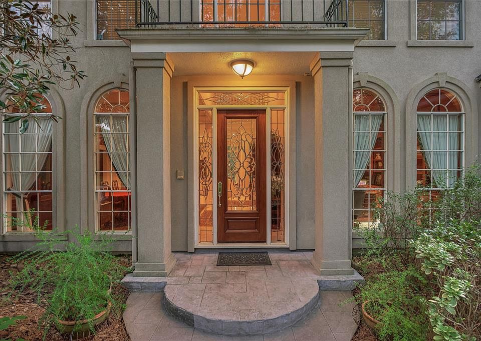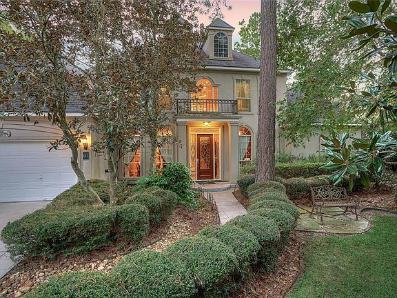 Extraordinary location on the Palmer golf course! Meticulously maintained home with grand balcony overlooking the lawn.Traditional elegance in architecture and surfaces, with custom mill work and dramatic details throughout, including the winding double staircase with catwalk. Stunning Cathedral windows offer spectacular views of the fabulous pool and spa. With expansive granite counters, lovely cupboards, and island cooktop, the sparkling chef's space features a breakfast bar, dining area and a unique synthetic stone surround for the double wall ovens. Enjoy two gas fireplaces, a large wet bar, and a grand study with coffered ceiling and decorative double doors. The large Owners Retreat features pool access, a sitting area and a well appointed private bath. A wonderful backyard oasis with huge patio seats several and is equipped for a future outdoor kitchen. Large balcony provides great views of the pool and course. Dont miss this opportunity in The Woodlands. Call today!