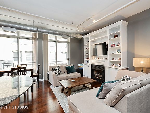 Fantastic oversized 1 bed/1bath concrete loft in prime West Loop location! This finely appointed, turn key unit features floor-to-ceiling windows, a beautifully upgraded kitchen, custom built ins, in-unit washer/dryer, very large private balcony and a fireplace with custom mantle. Building amenities include a 24-hour security staff, on-site dry cleaners, management office and is central to all that this neighborhood has to offer. Close to the Loop, Metra, CTA Green Line and Blue Line trains. Skinner School district. 2 parking spaces available for an additional $20,000 each.
