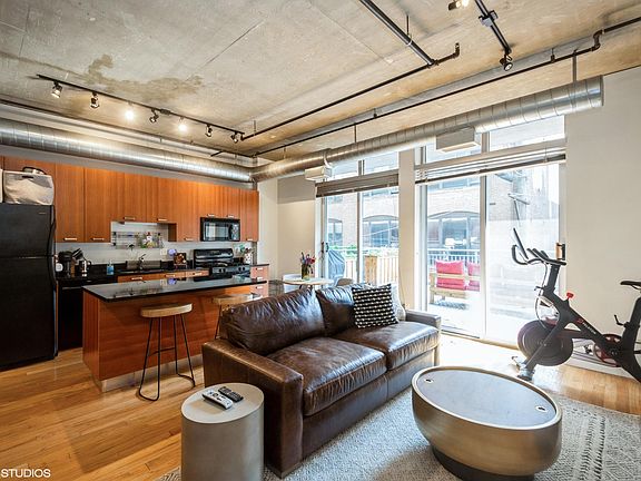 Rarely available 1 bed 1 bath in the trendy desirable West Loop. Unit features includes hardwood floors, floor to ceiling windows, in-unit washer/dryer and a huge 25ft private terrace. Spacious granite kitchen includes island, 42' maple cabs, oven range, refrigerator, dishwasher and microwave. 24hr door-staff and dry-cleaners in building.