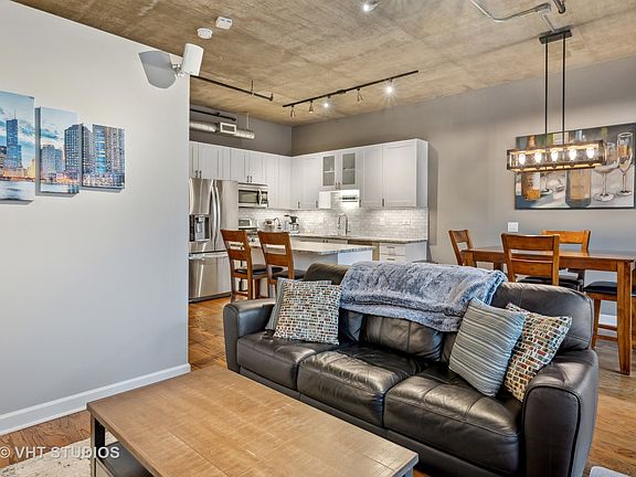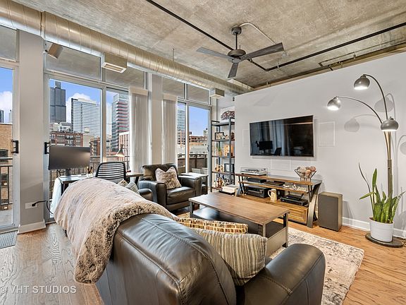 Completely remodeled extra wide condo with fantastic city views in the heart of West Loop! The rarely available 17-tier features an amazing 25' wide interior for a grand feel not often found in 1BRs in the neighborhood. The gorgeously updated home boasts three bays of east-facing floor-to-ceiling windows that steps out to the giant balcony overlooking the iconic Willis Tower. The beautiful white & stainless steel kitchen features granite counter tops, a carrera marble subway tiled backsplash, an eat-in island and offers plenty of cabinet & counter space. The bathroom has been gutted and now includes porcelain tiles, a walk-in glass shower and a new granite vanity. The spacious bedroom can easily accommodate a queen bed and includes a cool sliding barn door that leads to a giant walk-in-closet with Elfa shelving. With features like integrated surround sound (speakers from Boston Acoustics & Definitive Technologies), both a coat & linen closet, real hard wood floors, gas forced heat & central air, and a front loading high efficient washer & dryer from Bosch. Extremely well managed building (concrete floor & ceilings, no worries about noise) with internet & DirectTV included in the assessments, 24 hr door staff, extra storage, bike storage, and garage parking (additional $25K). Perfect location that's steps to parks (including Mary Bartelme Park - farmers markets, movies in the park & block party), nightlife, dining, shopping, CTA buses & El with easy highway access.