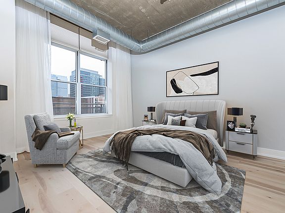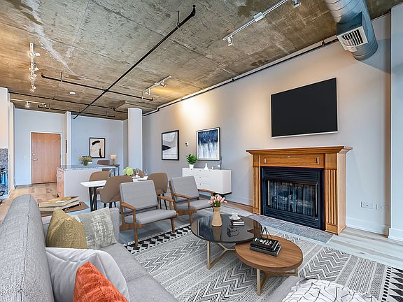 The most expansive east-facing floorplan 1 bed/1 bath unit. Features brand-new flooring throughout, new designer bathroom with Jacuzzi tub, double sinks, & porcelain tiles, fully-enclosed bedroom with built-in California closets, huge balcony, gas fireplace, hardwood floors in living area, in-unit laundry, storage, kitchen with island, granite counters/backsplash, & new stainless appliances. Washer/dryer 2021. A 8x7 den can be added in front of the kitchen. Building features a 24-hour doorperson & security. Located in the West Loop, close to everything the city offers.