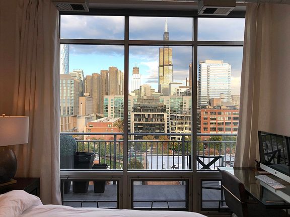IF YOU'RE LOOKING FOR THE BEST UNOBSTRUCTED VIEW IN CHICAGO, THEN THIS HOME IS FOR YOU! Come see the sweeping north to south, grand Chicago skyline views for yourself. You can enjoy the views through floor-to-ceiling windows in every room. Daytime, you will actually watch the weather patterns as they pass by. And nighttime is...magical. (SEE DRONE VIEW TOUR BY CLICKING ON "3D TOUR" ABOVE PICTURES) But that's only the beginning of this story - sophisticated and dramatic, no detail has been left undone in this just rehabbed, classic home. Everything is new - designer custom, black "British" kitchen cabinets topped with white Carrara marble countertops and gold hardware/fixtures; stainless steel appliances; light oak hardwood flooring with cork underlay; custom raised-panel doors throughout; on-trend Circa lighting; brand new Lennox HVAC system w/NEST thermostat; LG in-unit washer/dryer; and closets with custom shelving. New wainscoting was installed on the living room walls up to the 10' high ceilings. The home has a desirable split bedroom floor plan that flows easily with two ensuite bedrooms. Primary bedroom suite has deep-soaking tub, separate shower and dual sink vanity. 2nd bath is truly an Architectural Digest's dream with glazed ebony tile & gold fixtures. Future dinner parties will be enjoyed on your private 200 sqft terrace, with endless skyline views as your backdrop. The building itself offers a 24/7 door staff, onsite property manager, dry cleaner, storage and the Morgan Street Cafe for quick bites. Additionally, you'll lovely Mary Bartelme Park, just 1 block away. This penthouse home is on a perfect block in popular & fun West Loop. You'll have to see the level of refinement for yourself, but you won't want to leave...
