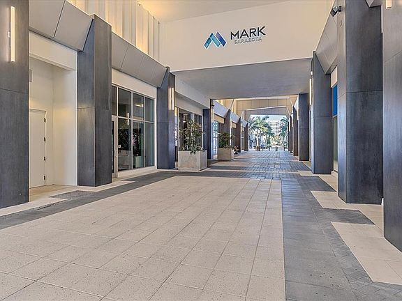 Elevated downtown Sarasota living at The Mark. In the heart of downtown Sarasota, this impeccably designed residence offers city living in one of Sarasota’s premier full-service buildings. Positioned near Whole Foods, the Sarasota Farmers Market, fine dining and boutique shops, the residence combines convenience with refined design. This eighth-floor residence features two bedrooms, two and one-half baths and a flexible den across nearly 1,600 square feet. Soaring 10-foot ceilings and floor-to-ceiling glass allow natural light to accentuate custom designer details, including blackout window treatments, porcelain and ceramic tile flooring, ceiling fans and modern lighting fixtures. The gourmet kitchen is appointed with European soft-close cabinetry, JennAir appliances, a wine refrigerator, Grohe fixtures and quartz countertops. A large island accommodates seating for three, offering a seamless space for dining or entertaining. Adjacent, the dining area features elegant lighting and flows into a spacious great room that opens to a private terrace with cityscape views. The primary suite includes custom built-ins and an en-suite bath with dual vanities, ample storage and a walk-in shower. The guest suite also offers an en-suite bath and skyline views. A well-appointed laundry room includes cabinetry and full-sized washer and dryer. Near the 5th floor amenity level, residents enjoy convenient access to a resort-style 65-foot pool overlooking Sarasota Bay, fitness center, clubroom with catering kitchen and pool table, outdoor grills, fire pit lounge and café-style workspace. This residence includes one assigned parking space on the third floor within the secured resident portion of the parking garage and a separate secured storage unit. The Mark offers 24-hour staffed reception and security personnel. The unit is leased, and buyer will assume the existing lease as landlord, which expires 5/31/2026. No open house will be held, and showings are by appointment only.