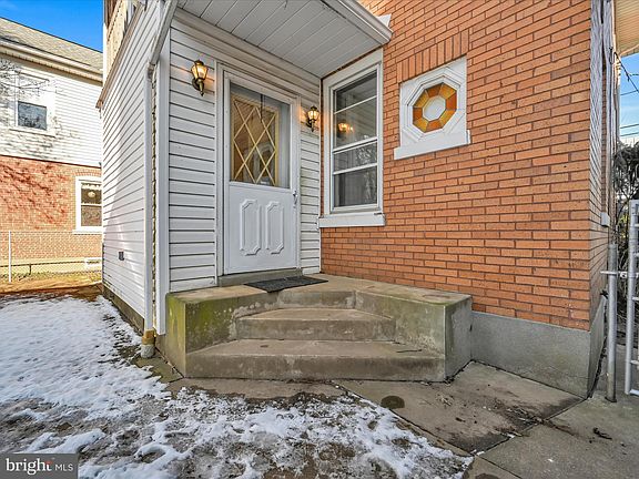 Welcome to your charming new home! This meticulously maintained 2 1/2 story brick residence boasts timeless appeal and modern comforts. Featuring three hall-entered bedrooms and 2 baths, this home offers ample space for comfortable living. Step inside to discover recently painted interiors complemented by new wood laminate flooring throughout, creating a fresh and inviting atmosphere. The large covered front porch sets the scene for relaxation and welcomes you into the home. The eat-in kitchen comes fully equipped with appliances, perfect for preparing delicious meals. Conveniently located on the first floor, the laundry room is outfitted with a washer and dryer for added convenience. Enjoy your morning coffee on the balcony overlooking the expansive fenced-in yard, offering a private oasis for outdoor enjoyment. In the rear of the lot you'll find a 1-car garage ( door is small and will only fit a smaller vehicle) and attached 2-car carport, providing ample space for vehicles. This home is equipped with oil hot water heat and central air conditioning on the second floor, ensuring comfort year-round. The roof was replaced in both the house and garage in 2017, offering peace of mind for years to come. Additional features include 200-amp electric service, a holding tank for hot water installed in 2016, a walk-up attic for storage, and a concrete basement with outside entry. Located in the sought-after Elco School District, this home offers the perfect blend of charm, convenience, and functionality. Don't miss your chance to make this your dream home!