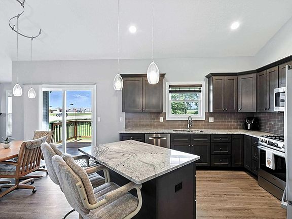 Welcome to this stunning ranch home in Eldridge, perfectly situated on nearly an acre of land! This beautifully designed 4-bedroom, 3.5-bath home offers open-concept living with thoughtful features throughout. The spacious main level includes a large primary suite with a walk-in closet that connects directly to the laundry room for effortless everyday living. Enjoy the warmth and ambiance of two fireplaces one on each level, entertain with ease in the fully finished daylight basement, complete with two additional bedrooms, a full bath, and a sleek wet bar. The oversized 3-car heated garage features floor drains and plenty of room for storage or projects, and the whole house generator adds peace of mind year-round. This home is the perfect blend of comfort, function, and style don't miss it! Call today for your private showing!