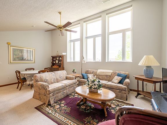 Wonderful 2 bedroom, 2 full bathroom upper floor condo with large windows for lots of natural light and downtown rooftop views. This condo features a larger primary suite with large walk-in closet and private bathroom, a kitchen with breakfast bar, a great room, a guest bedroom, and a utility room. This unit has attic space for extra storage and a parking space in the lower parking garage level. All appliances, including washer and dryer are included. The building comes with common areas for gatherings and beautiful gardens around the building. Walking distance to downtown shopping and restaurants, as well as DePauw University's campus.