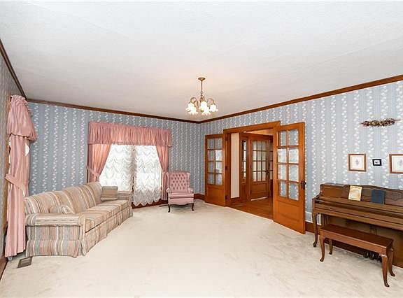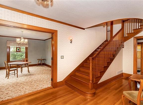 Here is your chance to own a piece of history with this beautiful 2-story colonial! Classic character & charm grace every aspect of this home & include a covered patio, French doors, marble tile entryway, curved wooden staircase, built-ins, laundry shoot, butler's pantry and so much more! Detached garage/workshop is 30'x24'. Tons of additional storage space in basement & floored attic. Home is nicely insulated w/ cedar siding & immaculate condition. Hardwood floors under carpet. New copper plumbing.