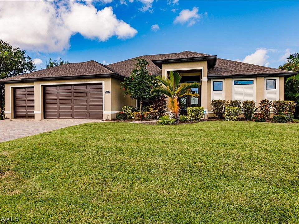 GULF ACCESS pool home with all ASSESSMENTS PAID, need we say more! Come sit out on your large, screened lanai with water views and easy GULF ACCESS. The lanai extends the full length of the house with an extended pool, pavers, pool heater, shower and connections for an outdoor kitchen. An open concept kitchen features granite countertops and separate large dining room adjacent to the lanai and pool. Floors include 18" tile throughout with carpet in the three bedrooms. A spacious master bedroom includes ensuite with double vanity, two large his and her walk-in closets and a huge oversized shower. There’s also a convenient den space perfect for working from home or a learning room for the kids. Hurricane impact windows have been installed throughout the home. This paradise includes a 12-foot double tray ceiling in the great room and 8-foot doors throughout. Curb appeal pops with an upgraded decorative landscaping package that leads to your three car garage with paver driveway. Your SWFL dream home is waiting for you, schedule a visit now. Highest and best offers due by Monday Nov. 8th by 5p.