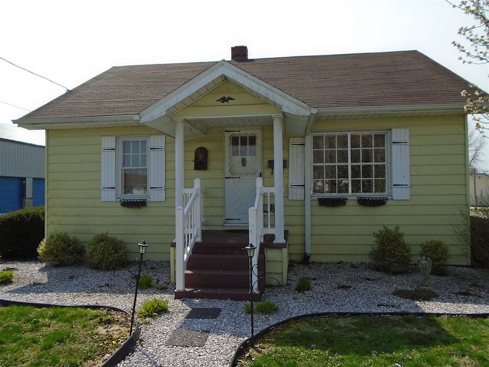 Charming 2 bedroom, 1 bath home in town. Eat-in kitchen with tile floor, spacious living room with hardwood floors, full basement, covered front porch, carport with sitting area on 2 lots, landscaped and storage shed. Nice corner lot, conveniently located and move-in ready!