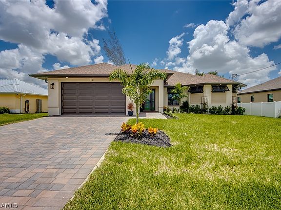 Gorgeous Brand New Custom Home being SOLD BELOW BUILDERS COST! 1878 SQ FT with 4 bed ,2 bath completed in 2024!!! C/O IS COMPLETE AND READY TO MOVE IN! SPACIOUS and open Airy Floor Plan with large great room, split BRs and lots of natural light. IMPACT WINDOWS & DOORS, STORM RATED GARAGE DOORS, BEAUTIFUL Bahama Shutters, LED lighting, epoxy garage floor, Gutters across the front of the house.Premium landscaping pkg, paver driveway, walkways under truss lanai all have Pavers, dimensional shingles, and irrigation system, Spacious Foyer with impact glass front door and sidelight. You'll love the high Cathedral Ceiling and large neutral shiny floor tile. Luxurious kitchen finishes including quartz countertops, tile backsplash that reaches top of kitchen cabinets, pendant lights over expansive center island. 42" raised panel shaker-style wood cabinets with soft-close doors, crown molding, pot-filler spigot above the range with all stainless steel appliances, 3 door fridge, convection oven & whisper-quiet DW and a wine fridge. Elegant Master suite has tray ceilings, Master Bath with dual vanities, 13 Drawers in vanity, glass shower, Toilet Room, His & Hers walk-in closets w/ ventilated wood shelving. LARGE lanai under truss w/pavers, Electric and Water Hook up in place for your Summer Kitchen on your Lanai! Washer & Dryer not included. This area just North of Pine Island Road has City Water/City Sewer installed. Remaining Assessments to be Assumed by Buyer. Just off Embers Pkwy that is close to: Publix, Shopping, Restaurants, Joe Stonis Park, Pine Island Corridor, New Upcoming Entertainment District, and shopping.