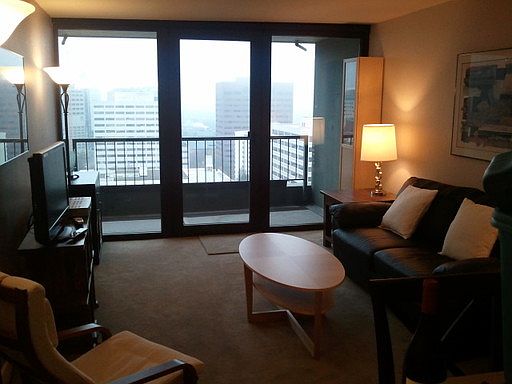 Fully Furnished Corporate Executive 1 Bd/1 Bth Condo on the 18th Flr in the HARRISON BUILDING!PROPERTY ADDRESS: 111 SW Harrison, Unit 18E, Portland, OR 97201COUNTY: MultnomahAPPROX. SQ. FT.: 570BEDROOMS: 1BATHROOMS: 1LEASE TERMS: 30 Days - 12 Months+RENT: $1950: 30 Days to 6 Months $1850: 7 to 9 Months $1750: 10-12 MonthsSECURITY DEPOSIT: $1950-$1750 depending on the Lease TermSCREENING CHARGE: $50 per adult applicantSeparate check is required for screening chargesDESCRIPTION: *Fully Furnished Corporate Executive 1 Bedroom Condo*All Furnishings, Linens, Housewares, Utilities and Parking are Included.*Community Outdoor Seasonal Pool, Year Round Outdoor Spa*18th Floor Condo with Views of the West Hills to the West, the City of Portland to the North and the Willamette River to the East.*Outside Balcony with access from the Bedroom and Living Room.*Open Concept with Island in the Kitchen.*Wood Floors.*Granite Counters.*Stainless Appliances.*Dedicated Parking Space in Secure Parking Garage.*24 Hour Laundry is Located in the Lower Level of the Building and is FREE of charge.DIRECTIONS: Located between SW 1st and SW Harrison on the Portland Streetcar Line and only 2 Blocks to Portland State University.SCHOOLS:West Sylvan ElementaryChapman MiddleLincoln HighHEAT: ElectricAPPLIANCES: Refrigerator, Microwave, Stove, Garbage Disposal and DishwasherAMENITIES: Balcony, All Utilities including High Speed Wireless Internet, Contemporary Furnishings.UTILITIES INCLUDED IN RENT: Water, Sewer, Garbage, Electric, Cable and InternetUTILITIES PAID BY RESIDENT: None unless Land Line Phone is Needed.PET POLICY: No PetsVEHICLE RESTRICTIONS: One Dedicated Parking Space.SPECIAL TERMS: No Smoking. Renter's Insurance is required at the time of Move In.Information is Deemed Reliable but is Not Guaranteed.