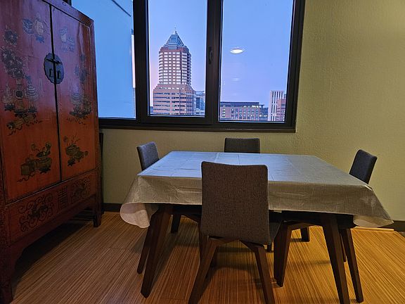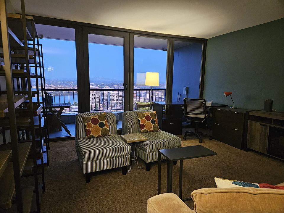 This fully furnished one-bedroom, one-bathroom condo offers a stylish and convenient living space in the heart of downtown Portland. Move-in ready and designed for comfort, the condo features a bright living area with a private balcony that captures city views, a well-appointed kitchen with stainless appliances including a dishwasher, oven, microwave, freezer, and refrigerator, as well as the comfort of air conditioning and forced air heating. The building provides desirable amenities such as off-street parking, a swimming pool, and secure bike storage. The location is ideal for professionals, students, and medical staff seeking quick access to Portland's major employers and institutions. OHSU, Portland State University, and numerous medical facilities are just minutes away, making it an excellent fit for those on temporary assignments or internships. Residents can easily explore the vibrant downtown area, with local favorites such as Lovejoy Bakers, Southpark Seafood, and Portland City Grill within close reach. The condo also places you near the South Park Blocks, Tom McCall Waterfront Park, and the Portland Art Museum for recreation and culture. With the Portland Streetcar and MAX Light Rail only a block away, commuting around the city is seamless, whether for work or leisure. This furnished condo combines comfort, convenience, and location, offering a perfect home base for both short-term and long-term living in Portland. Lease term 1 year, flexible. Utilities included. $300 HOA Move in / Move out fee. $50 application fee. Tenant subject to all HOA rules. No Smoking in the unit or in the building.