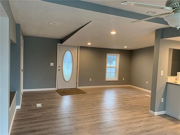 New, new, new! This home has been professionally renovated down to the studs, all new insulation, drywall, and windows. New roof, updated 200 amp electrical, new hot water tank, new electric heat pump, backup furnace, and central air. Brand new stainless steel kitchen appliances and washer & dryer. New flooring and carpet. Energy efficient recessed lighting throughout with a ceiling fan in the dining room. Freshly painted throughout with brand new cabinets, counter tops and open concept. Tons of cabinet and counter top space! Brand new, spacious covered front porch with hooks for a porch swing! New back deck with new sliding glass door from dining room. Covered portion of the deck also has access from the laundry room. Electric garage door/opener for detached garage coming soon. Beautiful, fresh, clean home with a flat yard - perfect for anyone just looking to turn the key.
