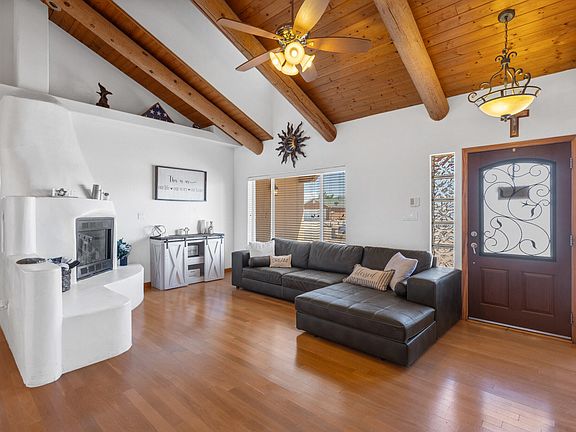 Welcome Home! This stunning 3-bedroom, 2-bathroom custom home with an office offers an open floor plan and is located on the 5th fairway of the Tierra Del Sol Golf Course. This home features two separate living areas, a Kiva fireplace, and vaulted ceilings with tongue-and-groove and vigas, adding warmth and character. This home has hardwood flooring, large bedrooms, refrigerated air, tankless water heater, custom kitchen cabinetry, granite countertops, and stainless steel appliances. The master suite includes a private bath with a jetted tub, separate shower, dual sinks, walk in closet and access to a back patio. This home is a must see! Schedule your showing today, and make this your new home!
