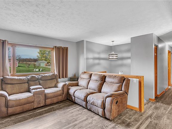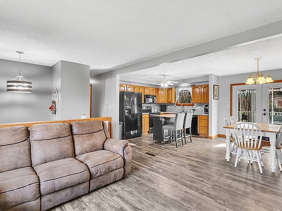 Here it is – an updated home in Riverside school district set on almost an acre of privacy! Natural light flows through both the picture window of the living room & the French doors of the dining area showcasing the open layout. The family chef will love the ease of the kitchen layout! This space is underscored by newer laminate that beautifully complements any décor & flows right out to your covered deck. The backyard is the trifecta of perfection: flat, tree-lined & fenced! Additional exterior features include an attractive above-ground pool & 2 sheds offering plenty of storage. The finished basement is the ideal potential 4th bedroom, family room or out-of-the-way home office with a fireplace offering a handsome focal point. The 2-car integral garage – complete with pellet stove – is a feature you’re sure to appreciate as much as the home warranty!