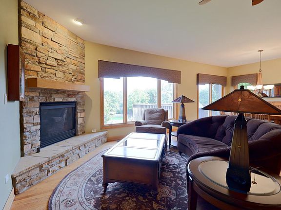 Beautiful End Unit Maple Model Town home features 2263 sq. ft of first floor and second floor livable space and additional approx. 1000 finished walk-out basement. First floor has large Eat-in kitchen with plenty of cabinets and counter space, New Refrigerator, cook range, built in double oven, dishwasher, microwave included. Formal living room with Beautiful stone fireplace, Formal dining room with patio doors leading to deck faces gorgeous views with East exposure. Second floor has large master bedroom with walk-in closet, full bath with whirlpool tub, shower and double vanity. Large second bedroom with full hall bath. Loft could be office or extra bedroom. Second floor washer and electric dryer with basin. Finished walk-out basement is great for rec room comes with 2 large built-in cabinets. Extra storage room and full bath. Attached 2.5 garage and covered patio. Hardwood floors, 6 panel oak doors and trim. UV film on all windows. Gas hook up for the grill on the upper deck. Roof 1 year old, A pleasure to show, Quick occupancy available.