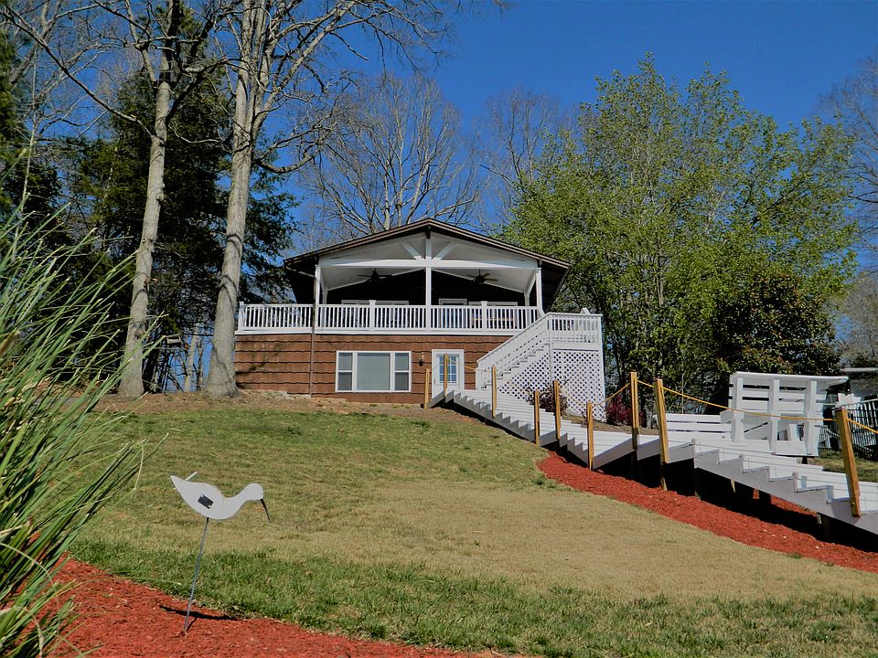 Newly remodeled Lake Tillery home with big main channel views. This home is calling for you to relax on the covered porch to watch the sun set or hang out with all your friends at the grandfathered enclosed boathouse that has a bar just begging to entertain. Boathouse has automatic door openers to keep your water toys out of the elements. This home offers new cabinets, granite countertops, tile showers, new flooring and paint throughout. Turn key. Just bring swim suite.