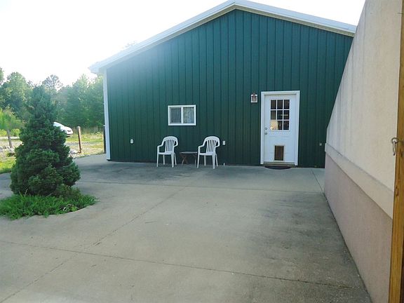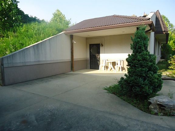 Unique 2 bedroom, 2 bath berm home nestled on 6 acres built in 2006. Spacious living room with fireplace, kitchen has breakfast bar, granite countertops, built in pantry. Heated floors,. Master bedroom 15x14, tray ceiling, cedar walk-in closet. French doors onto patio. Master bath is done in marble with jetted tub, separate stand alone shower. Beautiful chandelier. Large laundry/utility room. Skylights thru out. Outside 2+car detached garage with full bath, fenced in front yard gorgeous landscaping. Property has 2 legal descriptions.