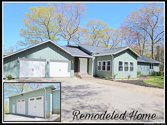 Tastefully and fully remodeled ranch style home in a desirable section of East Lyme. This expansive home features four bedrooms and seven bathrooms, comprising over 3800 square feet of living space, on a lovely lot. There is a brand new kitchen, with high end appliances, three baking ovens, granite counter tops, tile flooring and a subway tiled back splash. Step down from the kitchen into a new breakfast nook, filled with windows and natural light. There are formal living and dining room spaces, with newly refinished hardwood floors and plenty of room for entertaining. The master bedroom suite has new his and her bathrooms, a private covered porch overlooking the rear yard, and an enormous walk-in closet. There are three additional bedrooms, all with their own new full baths and plenty of closet space. The lower level features an expansive walk-out family room, with over 1000 square feet of additional living space, with a private office and half bath. Two separate garages are attached to the home, with room for plenty of vehicles, or the space of a contractors dream. One garage has oversized access doors and is suited for multiple vehicles, equipment, storage, or a work shop. The home is freshly painted inside and out, has a new roof, central air, and is ready for a new owner to move in and enjoy.