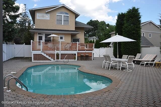 Winter Rental in Manasquan. This 4 bedroom 3 bath home with finished basement, backyard pool plus cabana is available beginning 9/21/24-5/15/25. This charming home features high ceilings, hardwood floors for the living and dining room. great kitchen with high end appliances. The bedrooms include a master bedroom with large full bath with tub and shower stall. Newly updated hall bath upstairs. Finished basement has a familyroom plus office space. There is also a bonus cabana space attached to the garage. Enjoy the off season walking distance to Manasquan and Sea Girt Downtowns