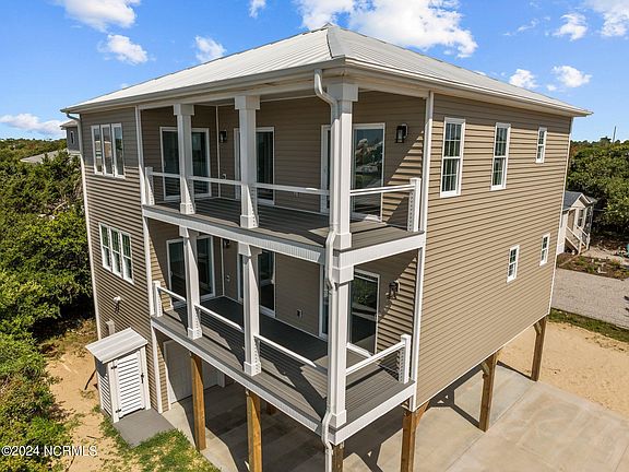 Discover coastal living at its finest in this meticulously designed home, perfectly situated in the heart of Emerald Isle. Enjoy gorgeous ocean views and easy access to shops and restaurants, all within walking, biking, or golf cart distance. This stunning property features a reverse floor plan that maximizes ocean views and natural light. The top floor boasts a spacious great room with an open-concept kitchen and dining area, perfect for entertaining. The primary suite, also located on this level, offers the option for convenient one-level living. A guest half bath and secondary laundry hookup complete this floor. The second floor boasts three additional bedrooms and a versatile bonus/flex room. Two of the bedrooms share an innovative dual en-suite bath, a modern twist on the traditional Jack and Jill layout. An additional laundry on this level adds convenience for larger families or guests. On the ground level, you'll find a golf cart garage with a half bath and ample space for beach gear storage. There's even a water connection ready for a self-contained ice machine - a must-have for summer months. The conditioned foyer provides access to the stairs, elevator, and additional storage. Throughout the home, each space has been thoughtfully crafted to maximize livability, style, and functionality. The elevator ensures easy access to all floors, making this home ideal for multi-generational living or those who prefer the convenience of single-level access. Experience the perfect blend of modern luxury and coastal charm in this thoughtfully designed home. Your beach lifestyle awaits! *** Photos containing furnishings have been virtually staged ***