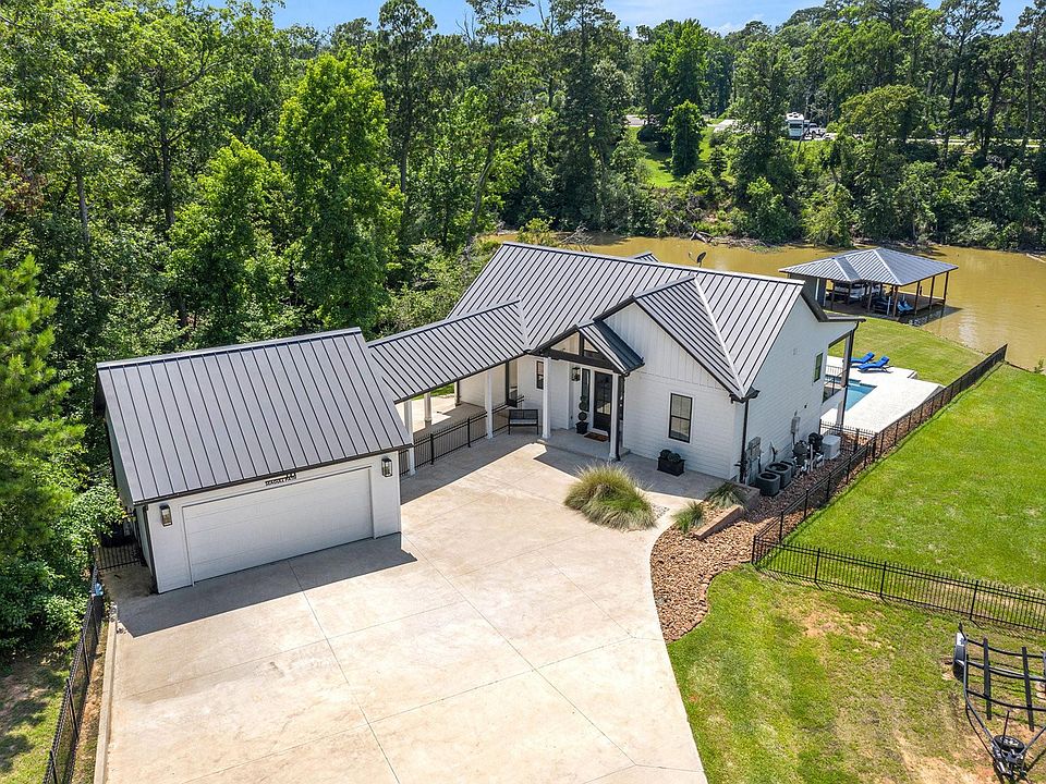 This amazing LAKEFRONT home is drop dead gorgeous & practically brand new! Only used as a weekend getaway but built like a primary residence. Situated at the very end of a cul-de-sac street this home was meticulously planned to take in the stunning views. HUGE balcony with sun shades off the family room can be opened via 3 sliding glass doors for amazing outdoor entertaining! Great two level living with the primary on the main floor along with a huge gourmet kitchen. Giant island/breakfast bar with seating for 10! Built-in Kitchenaid fridge & top of the line 6 burner cooktop. Downstairs has 3 more bedrooms (one is a great study) along with a gameroom & a FULL KITCHEN! Separate guest access can make this a true secondary living space. 3 more sliders lead to the outside patio with beautiful POOL/SPA area! The boat dock has lifts for a boat & 2 jet skis + extra storage & sitting space. Comes with 2 refrigerators and 2 full sized sets of washer/dryers! WHOLE HOUSE GENERATOR! NEVER FLOODED.