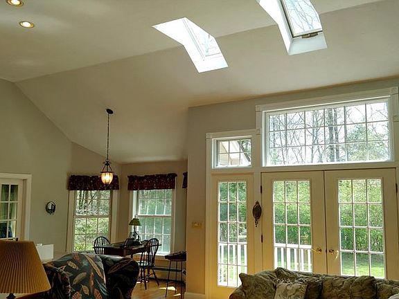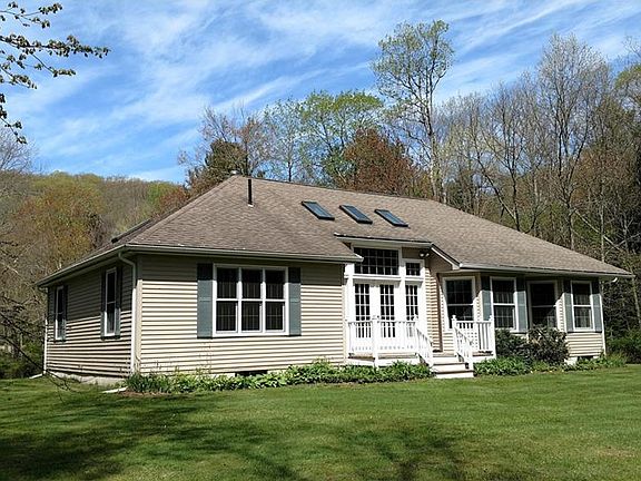 Enjoy comfortable and spacious living in this bright, modern 3 bedroom, 2 bath Pomfret, Connecticut, home. Perfect one-floor living with an abundance of natural light. The location is private, quiet and peaceful, situated on 2.8 acres, perfectly set back from the road. Features of the home include gleaming hardwood floors, an expansive glassed living room with skylights, cathedral ceilings, and a wood stove, a finished lower level family room with fireplace and built-ins, and a large open kitchen/dining area. Enjoy the wooded view from the back deck. Warm and loaded with character, this Pomfret home is ready for your arrival. Come see for yourself.