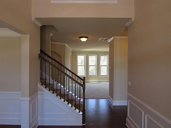 The Westchester On BASEMENT, one bedroom down and four up, very large open kitchen to keeping room, curved window wall in living room and awesome media room upstairs, upgraded SS appliances, tile bath floors and tons of hardwoods, 3 car garage plus a full basement that it is plumbed for another bath, walk out, front porch and more!