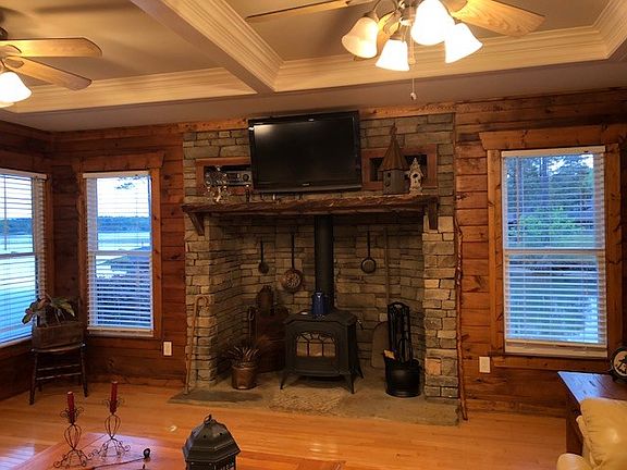 Purchased in 1995, additions and remodel affords this home a desirable spacious entertainment and living area. Oversized master bedroom with his and her seperate walk in closets. Large master bath with walk in tile shower and individual vanity areas. Kitchen features excess counter top space and open living room over looking the lake view with wood and stacked stone housing the wood burning stove that brings warmth during the chilly winter season. Outdoor kitchen area with sink, refigerator, gas grill and smoker expands your entertaining while enjoying the incredible view of the lake. Full size outdoor shower and stacked stone storage area add to the upgrades. Three car detached garage, what more could you ask for. Schedule your appointment and come see what Lake Sinclair can offer.