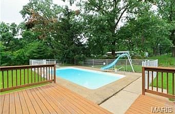 Amazing opportunity on a 3 bedroom, 2 bath home on .44 acres with a gorgeous in ground pool! This home sits on a quiet cul de sac lot that is nestled in trees yet it is close to restaurants, shopping and services on nearby Zumbehl Rd. It is also located minutes from the many amenities and recreation in historic downtown St. Charles. Features include: Hardwood floors, vaulted ceilings, raised panel Kitchen cabinets, ceramic tile backsplash, side by side refrigerator, pantry, ceiling fans, an 18 X 15 exposed aggregate patio, partially finished lower level, humidifier, partial brick front elevation, encl fascia-soffits and more. The large yard has mature trees, an in ground pool and a deck that is totally fenced in leaving a lot of yard for play. There is an attached 2 car garage with an 8 x 15 room for storage (currently there is a ramp that can be removed). There are steps to the basement from the house as well as a set of steps directly to the garage. There is easy access to Hwys 94, 364 and 70…check it out!