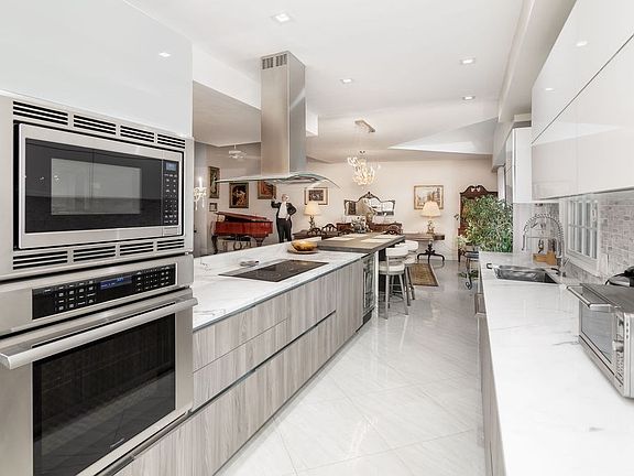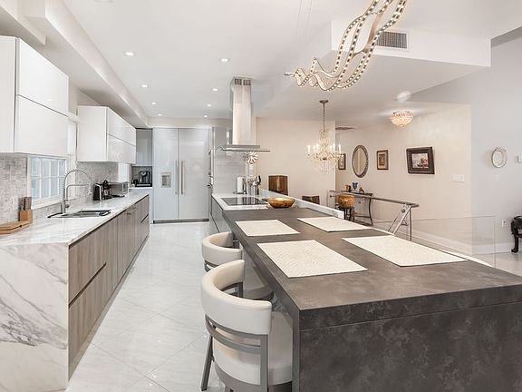 Completely renovated (2016) duplex penthouse apartment, 2500 sf, with 3 BRs and 2.5 baths, and extensive closets and storage. Porcelain (24"'x 24") tiled floors are installed throughout the upper level, commencing with long entry hallway. Dramatic contemporary living room with fireplace and sliding glass doors opens to large balcony, which features interlocking wood tile flooring. Large dining room that fits banquet sized table is adjacent to open-concept European kitchen with high-end cabinetry, Calacatta marble counter tops and waterfall, dining peninsula, and Thermador appliances - induction cook top, Sapphire dishwasher, separate built-in freezer and refrigerator columns, convection wall oven with microwave. Large butler's pantry located directly behind fridge/freezer provides extensive storage. Spectacular one-of-a-kind powder room with artist-crafted fossilized sink, waterfall faucet, and unique tiling. Contemporary LED high-hat ceiling lights and custom fixtures are installed throughout the upper level. Glass-enclosed new stairway connects upper and lower levels, with matching Calacatta wall. Lower level boasts three large bedrooms with hand-scraped acacia flooring. New master bathroom features large tiled shower with Porcelanosa shower panel, and has a double sink vanity. Expansive master bedroom has two (his and her) closets with custom organizers. Two additional bedrooms connected to new large Jack n Jill bathroom with Jacuzzi tub, shower panel, and double vanity sinks. Second bedroom is large enough to serve as a second master. Third bedroom has a large walk-in closet with custom organizers. Full size Electrolux washer-dryer is located in separate laundry room on this level. Each bedroom has a Juliet balcony. This level also has a utility closet and a second deep storage closet. Custom Hunter-Douglass Silhouette drapes and /or blinds in every room. Attention boaters....50 ft. boat dock for sale.