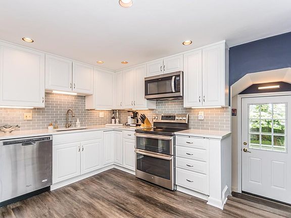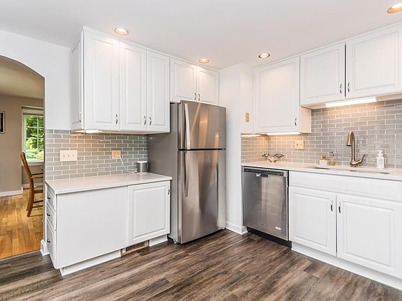 MINT CONDITION CAPE IN HIGHLY DESIRED GLEN MEADOW WEST LOCALE!!! This home is completely move in ready. New quartz kitchen with stainless steel appliances and tiled backsplash. Large formal dining with bay window opens to the living room. Large first floor master has many possibilities for its future owner and offers tons of privacy and natural light. First floor full bath has been completed renovated. Second floor offers two generously sized bedrooms and a half bath that can easily be converted to a full. Other features include CENTRAL AIR, refinished hardwood floors, younger heating system, vinyl windows, new light fixtures, large detached garage, professionally manicured yard, tons of privacy, and a street you wouldn't drive down unless you live on it!!!