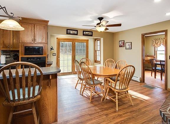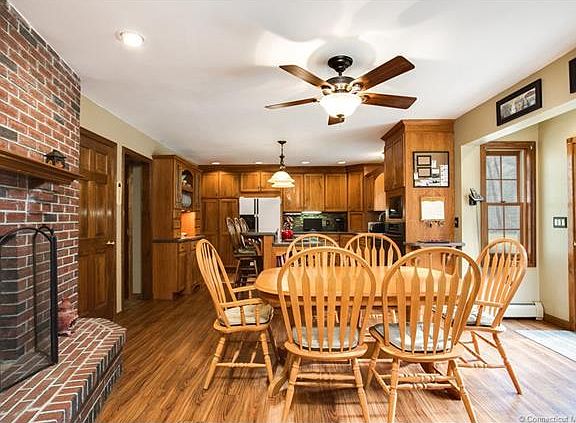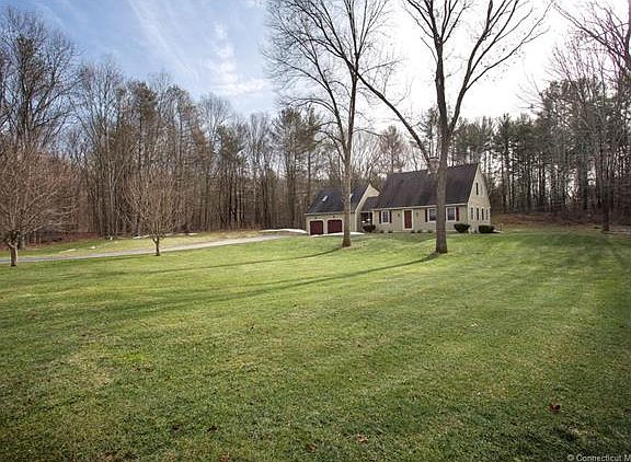 This Beautiful cape is nestled on a manicured 2.2 acre parcel and has features not even found in a 500,000 home! Coming down the asphalt driveway you approach the detached 2 car garage with a covered breezeway leading into the kitchen. The kitchen has a gorgeous maple built in hutch, a breakfast bar that seats 4 and corian counters throughout with new Appliances It spreads out so you can enjoy the brick fireplace while you are eating your dinner or company is flowing out to the back yard on the octogonal deck. The formal dining room winds around to the living room with another fireplace with a wood stove insert for extra warmth in the winter months. there are two levels of hardwood floors and a wonderful master bedroom suite with a large closet and double sink vanity in the bath. above the garage is a wonderful in-law area with a bedroom,living room, bath and kitchen. This one owner home has been lovingly cared for.