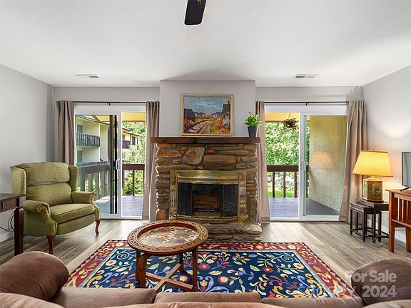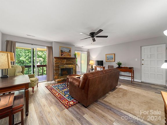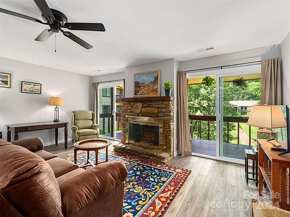 This updated and cozy condo features two bedrooms, two full bathrooms, a large living room with a stone fireplace, and is ready to be moved into. The bright and efficient kitchen offers a good amount of both counter and cabinet space. Enjoy green space views while on the porch and easily commute by car, bike, or foot to downtown Brevard for dining, shopping, festivals, and more!