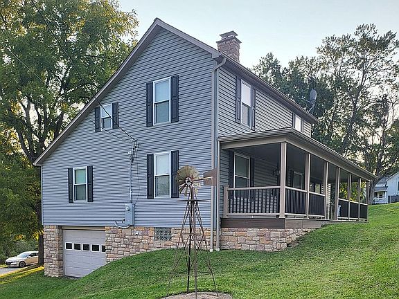 House sits on 2 lots - nice spacious yard with big trees separating properties. Within last 7 years we put on a new roof, all new windows, new doors, new siding, and all new front porch with the Trex decking material. Outside stone work on foundation. Also just had electrical boxes updated and all carpets washed. Huge kitchen with tons of counter and cabinets...leaving all kitchen appliances (gas stove with center griddle, dishwasher, and fridge). Fully furnished dinning room. Leaving curtains in all rooms, along with desk and storage cabinet in Livingroom. Garage holds 2 cars (one in front of the other), 2 full baths, 3 bedrooms. Lots of closet storage space. House can be heated with either coal or gas. Central air... works very good on main floor and we are leaving 2 window air conditioner for upstairs bedrooms.